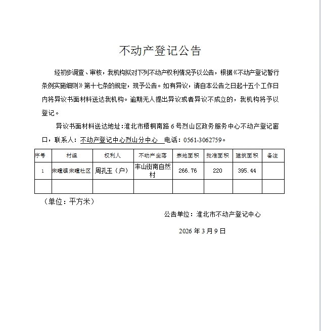 周孔玉(户)不动产登记公告