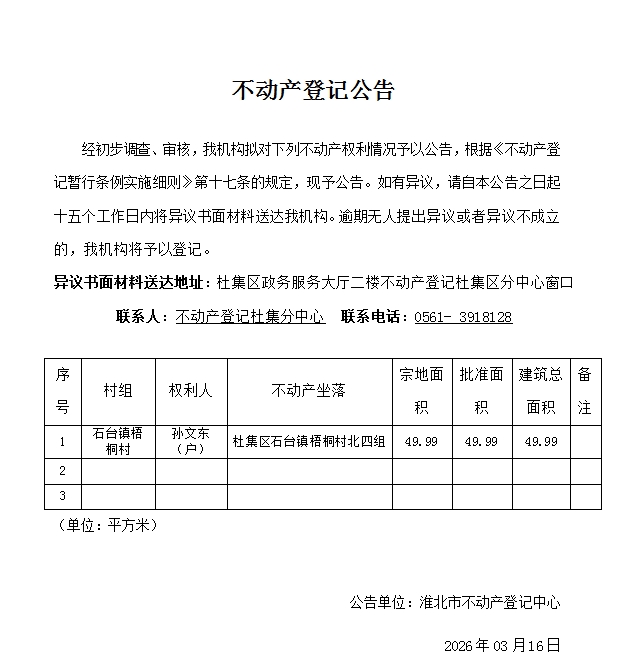孙文东(户)不动产登记公告