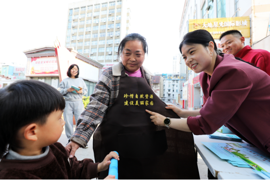 4月19日,志愿者走进两宫广场,通过现场讲解、发放宣传资料、知识问答等形式,向过往群众普及耕地保护、生态修复、资源节约等知识,倡导低碳环保、绿色生活方式。