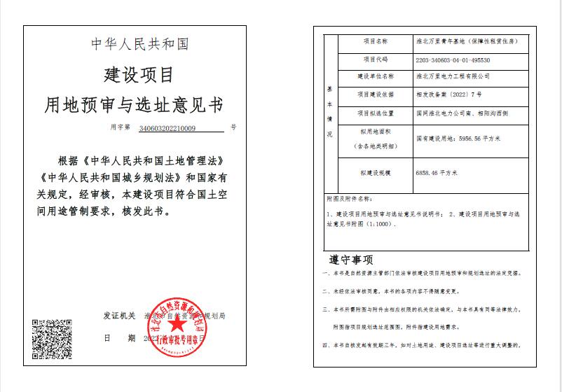 淮北万里青年基地(保障性租赁住房)建设项目用地预审与选址意见书