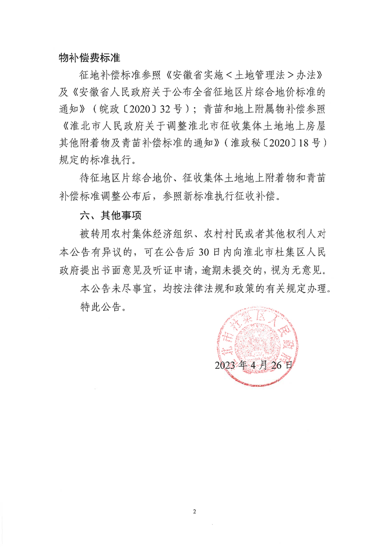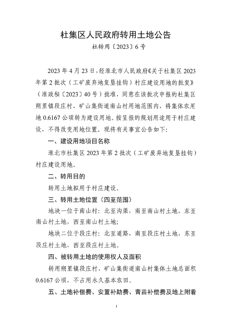 杜集区人民政府转用土地公告(杜转用〔2023〕6号)