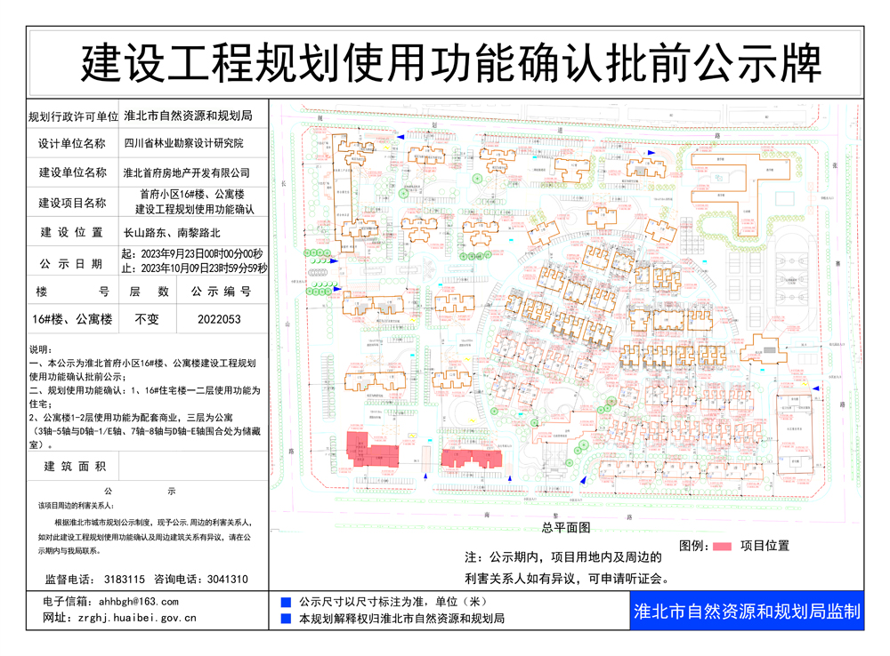 首府小区16#楼、公寓楼建设工程规划使用功能确认 |