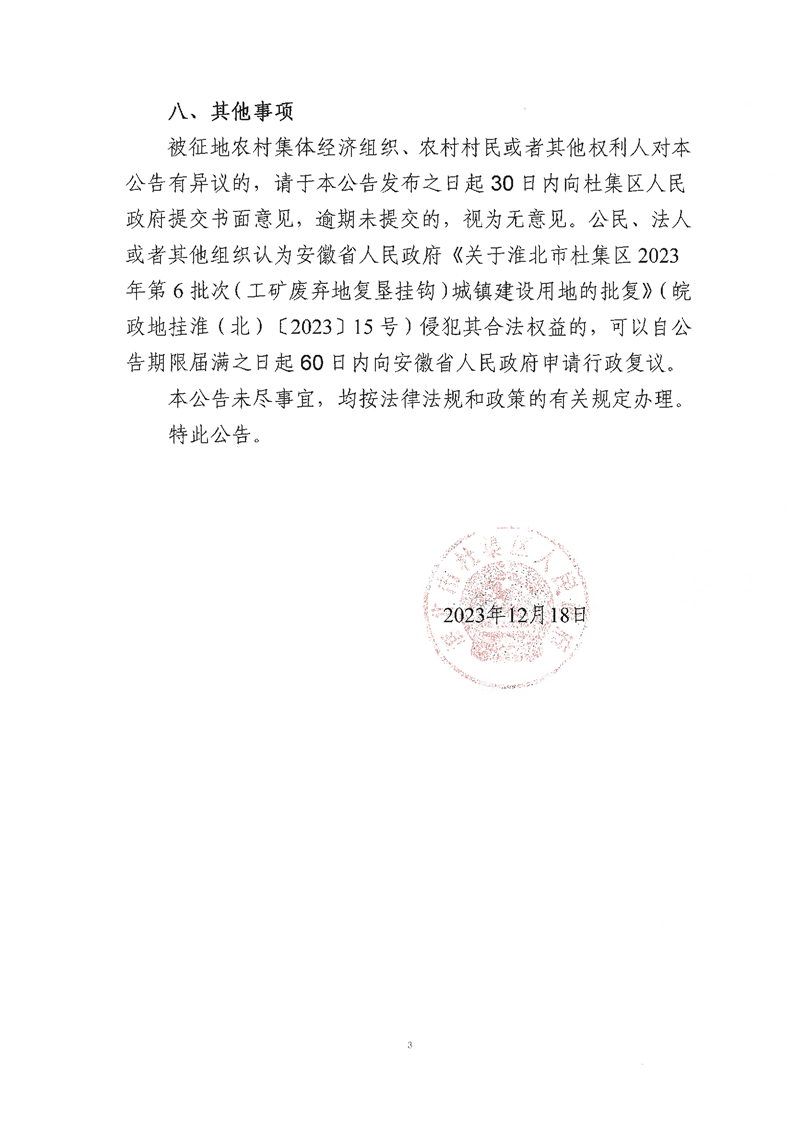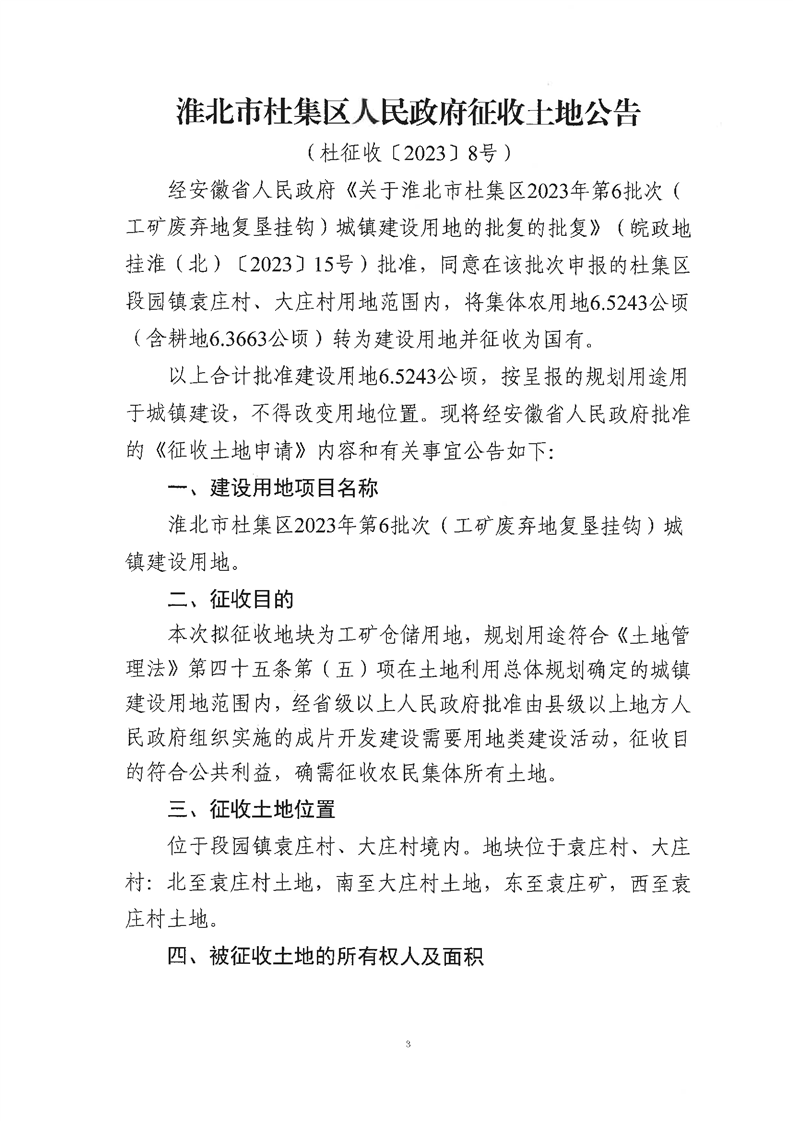 淮北市杜集区人民政府征收土地公告(杜征收〔2023〕8号)