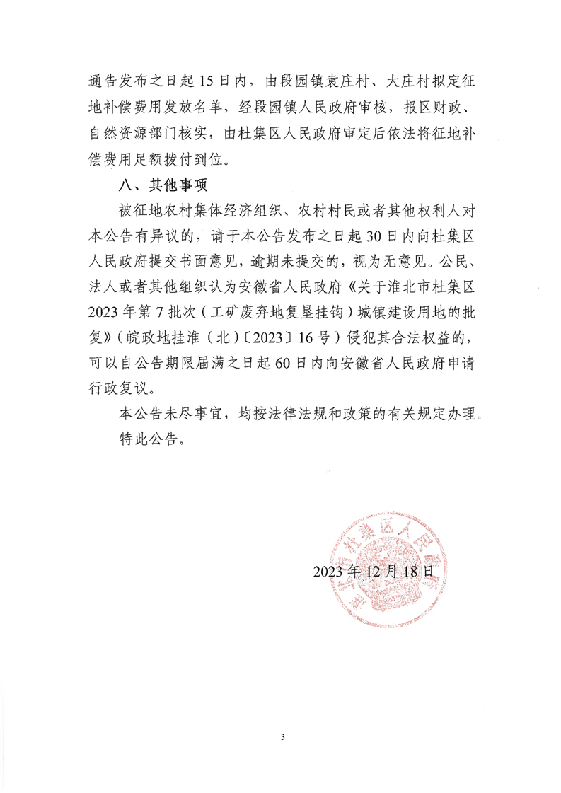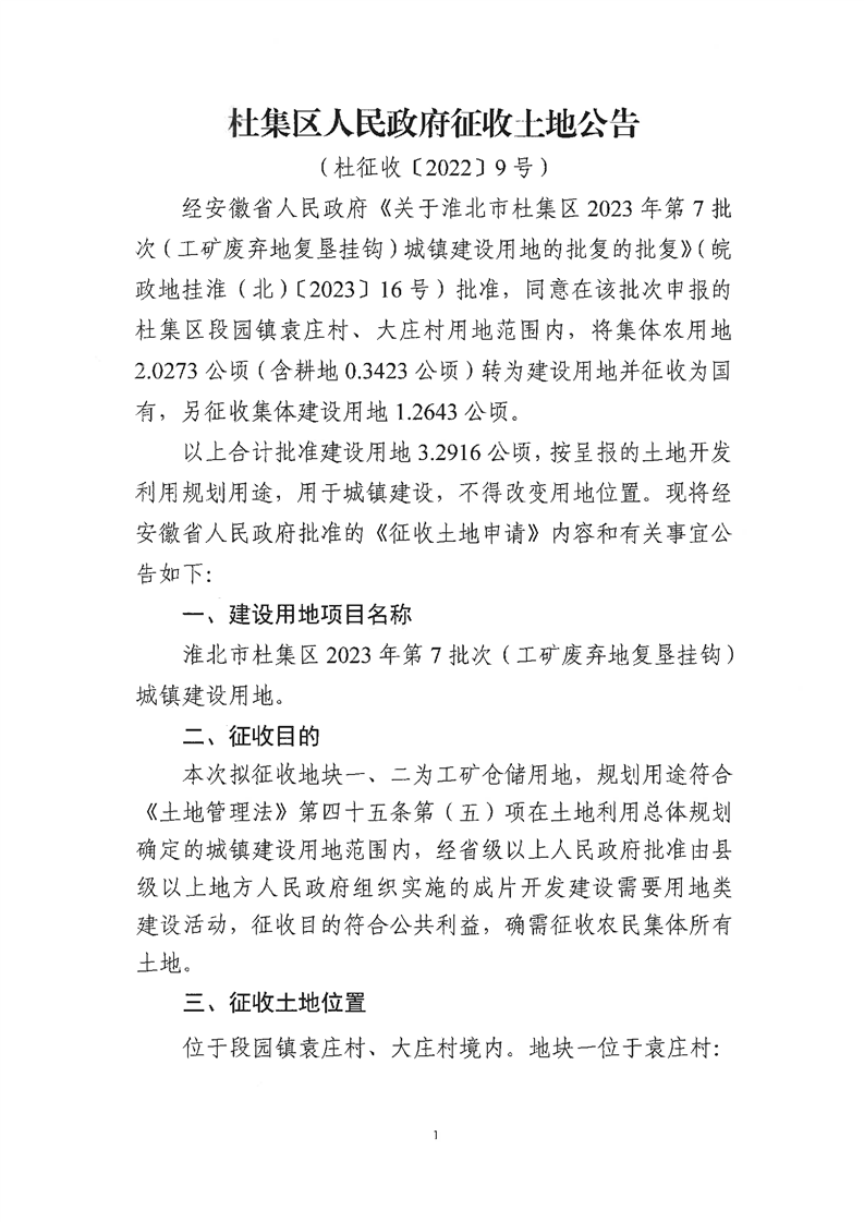 淮北市杜集区人民政府征收土地公告(杜征收〔2023〕9号)
