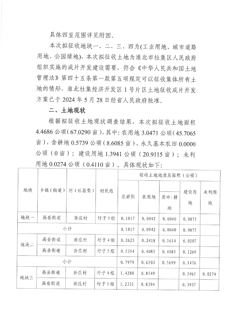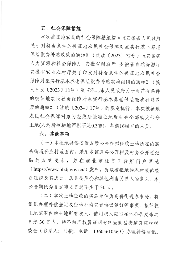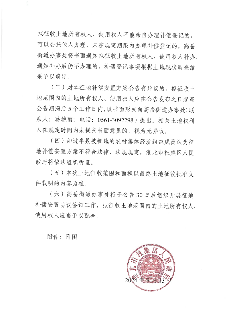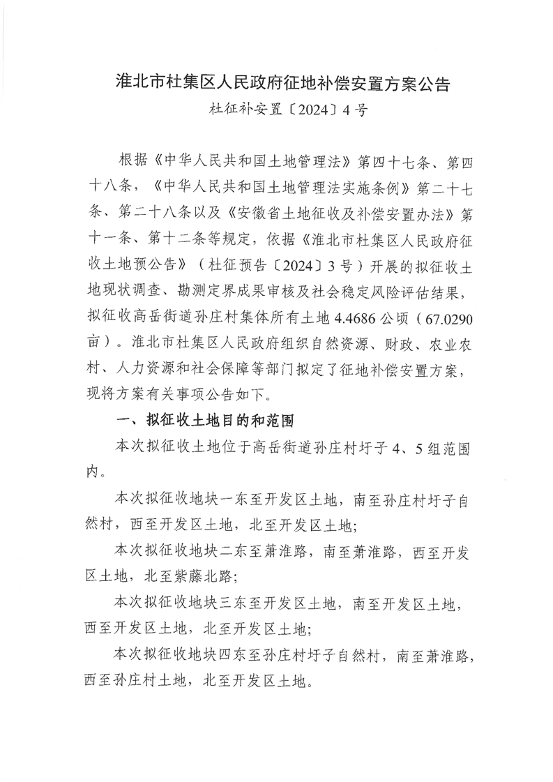 淮北市杜集区人民政府征地补偿安置方案公告杜征补安置〔2024〕4号