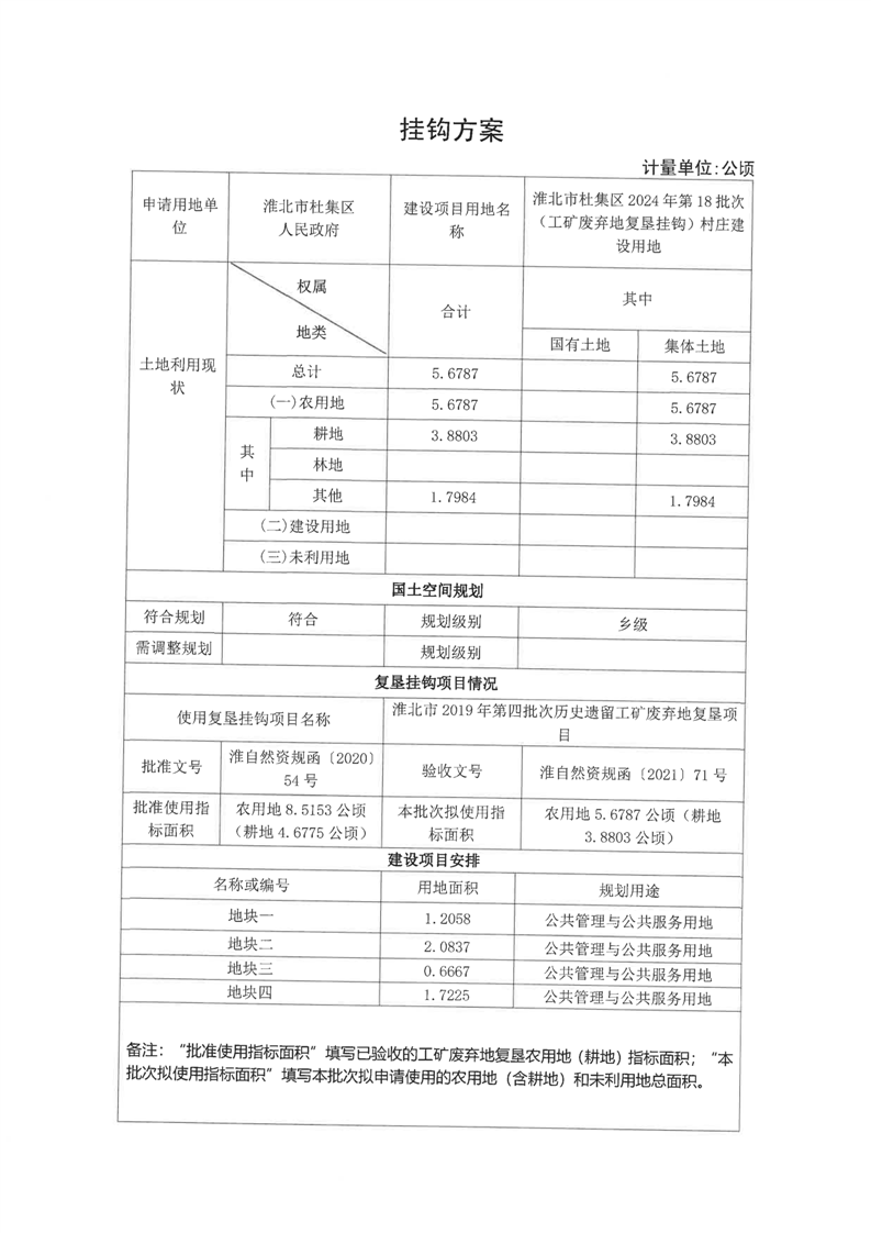 关于淮北市杜集区2024年第18批次(工矿废弃地复垦挂钩)村庄建设用地(工矿废弃地复垦挂钩建设用地呈报挂钩方案)