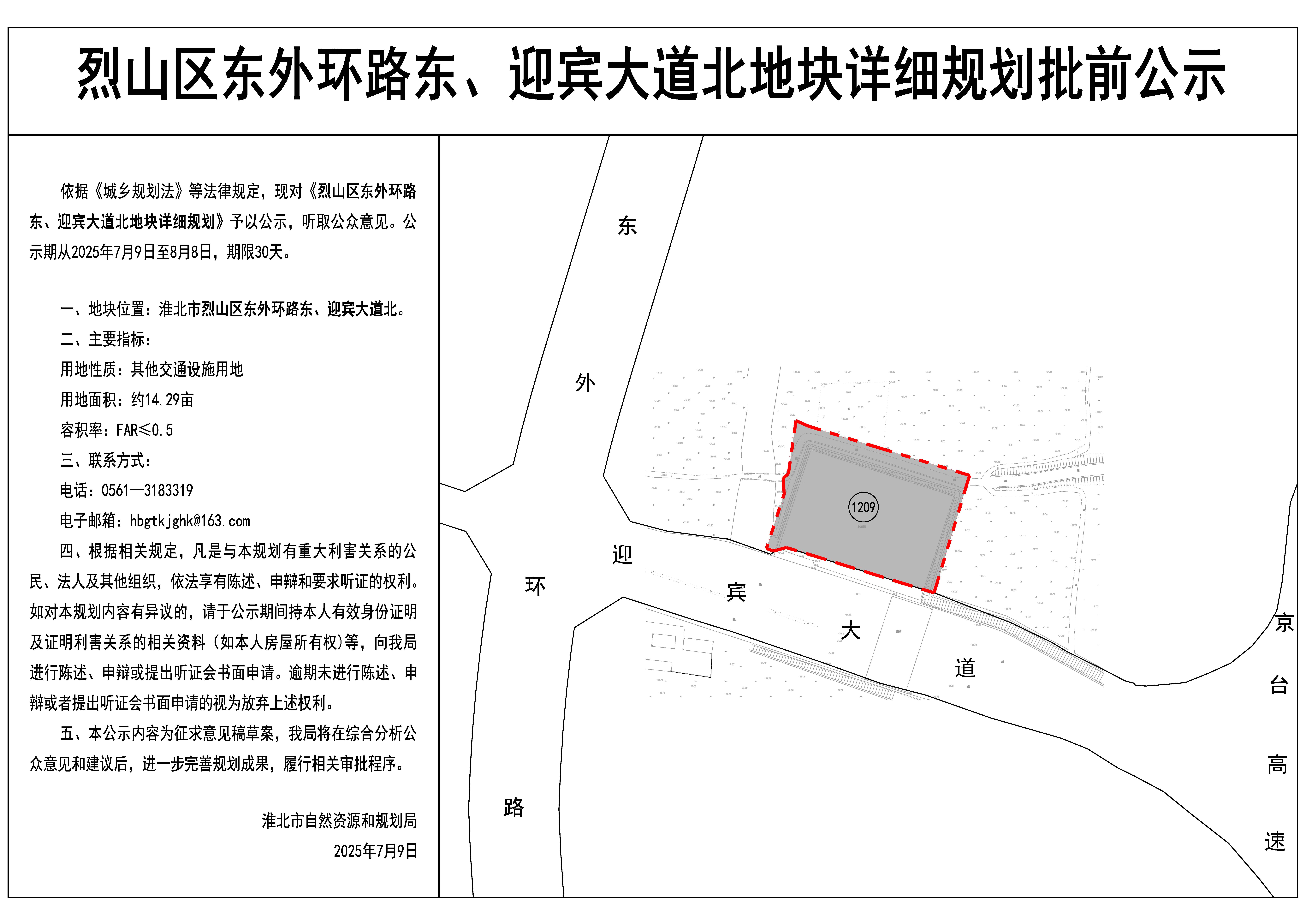 烈山区东外环路东、迎宾大道北地块详细规划批前公示