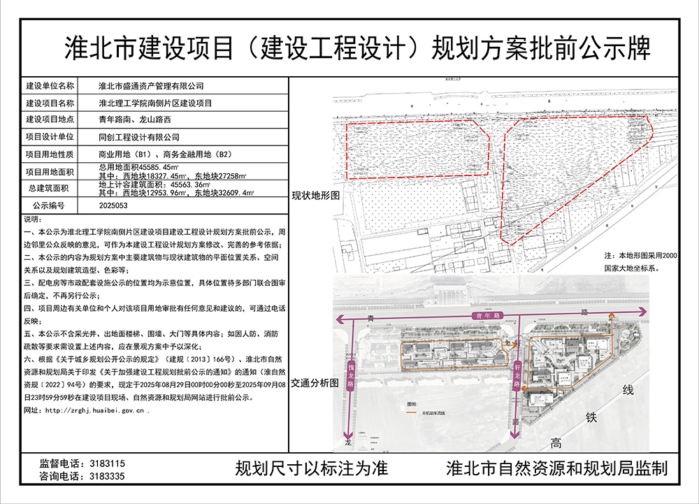 淮北理工学院南侧片区建设项目(建设工程设计)规划方案批前公示