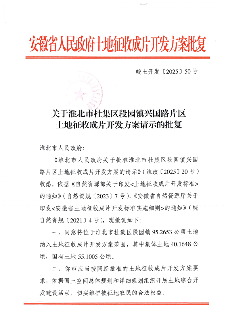 关于淮北市杜集区段园镇兴国路片区土地征收成片开发方案的批复