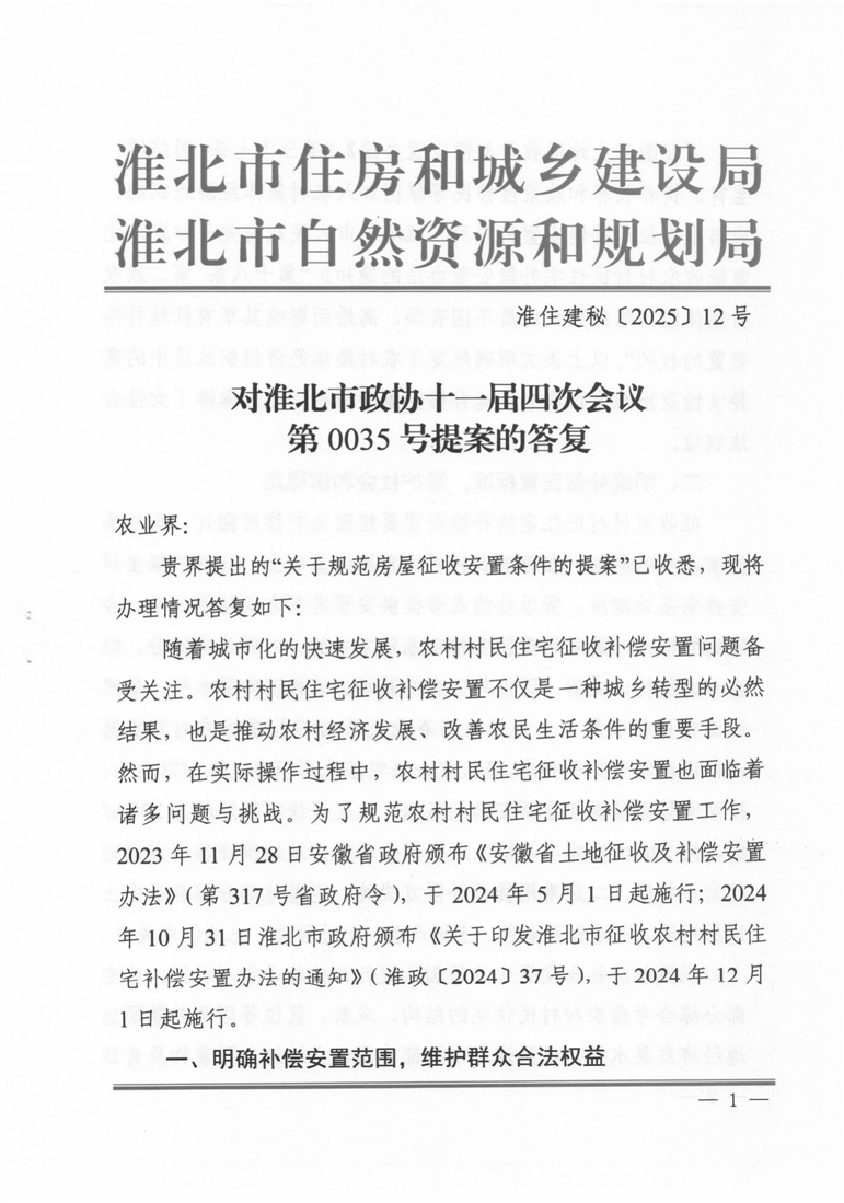 关于对淮北市政协十一届四次会议第0035号提案的答复