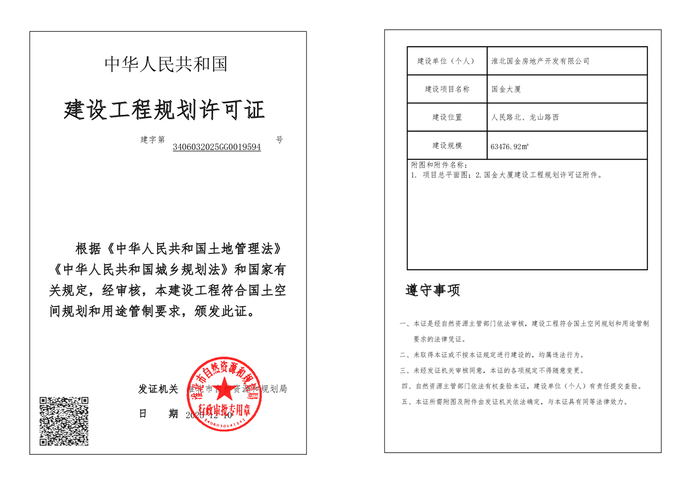 国金大厦建设工程规划许可证 |