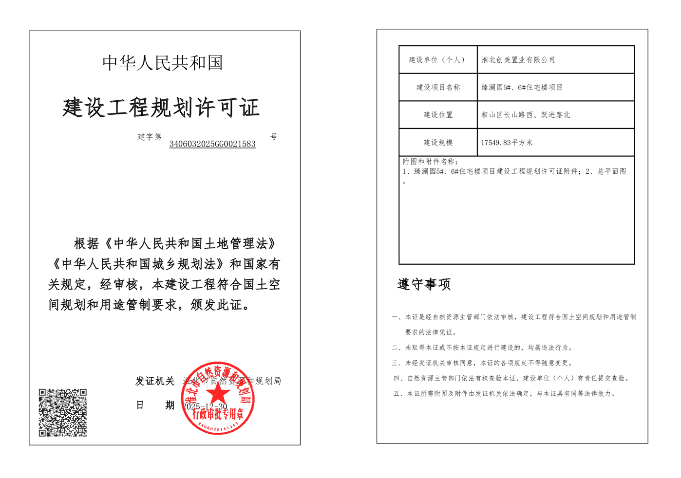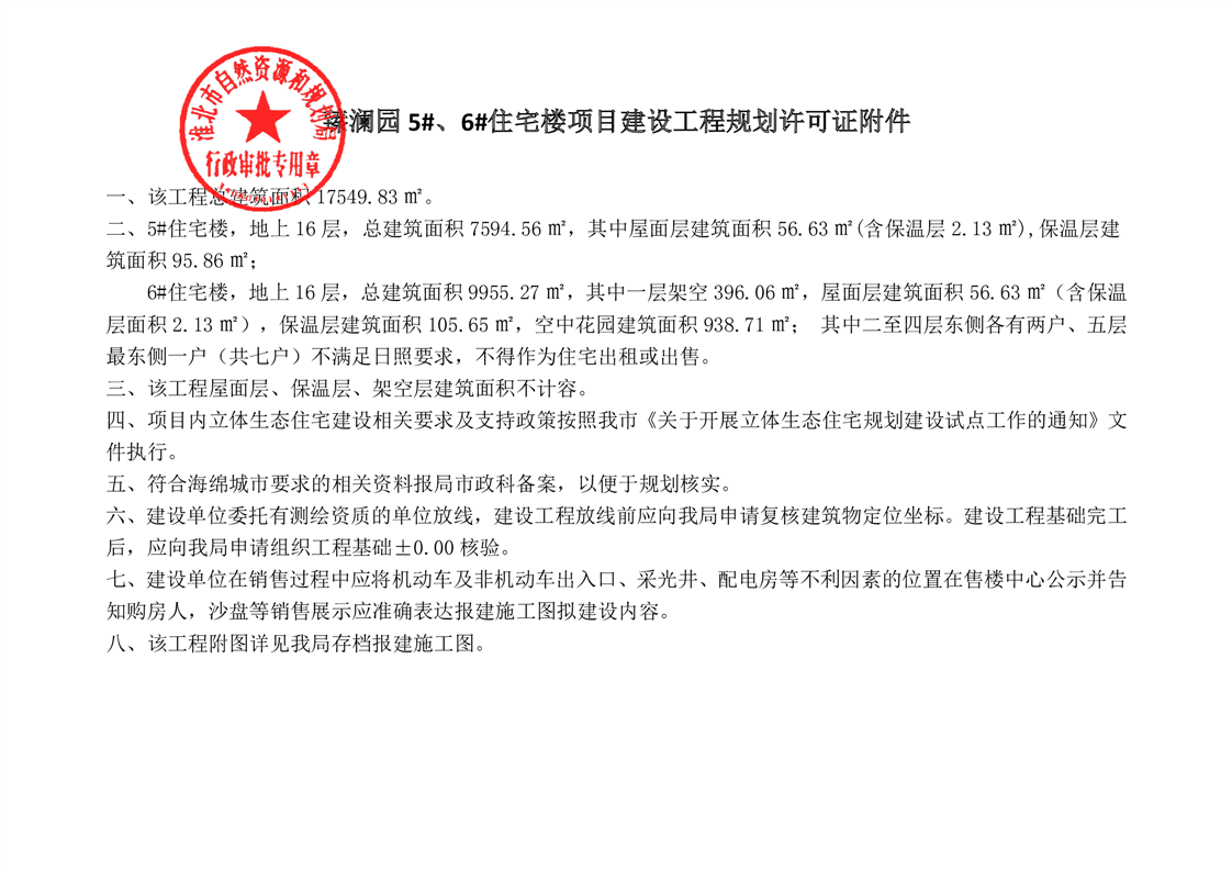 臻澜园5#、6#住宅楼项目建设工程规划许可证 |