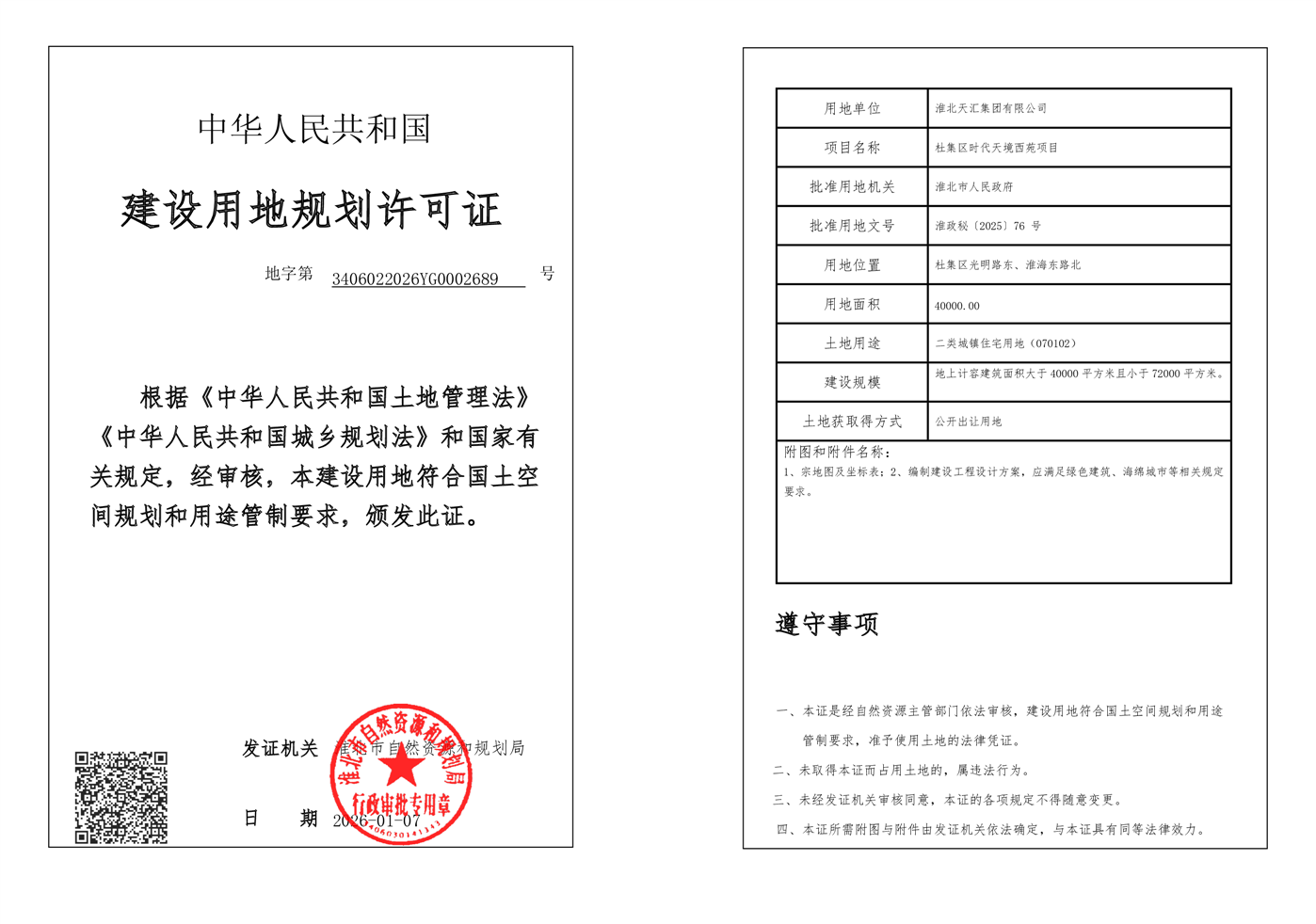 杜集区时代天境西苑项目建设用地规划许可证 |