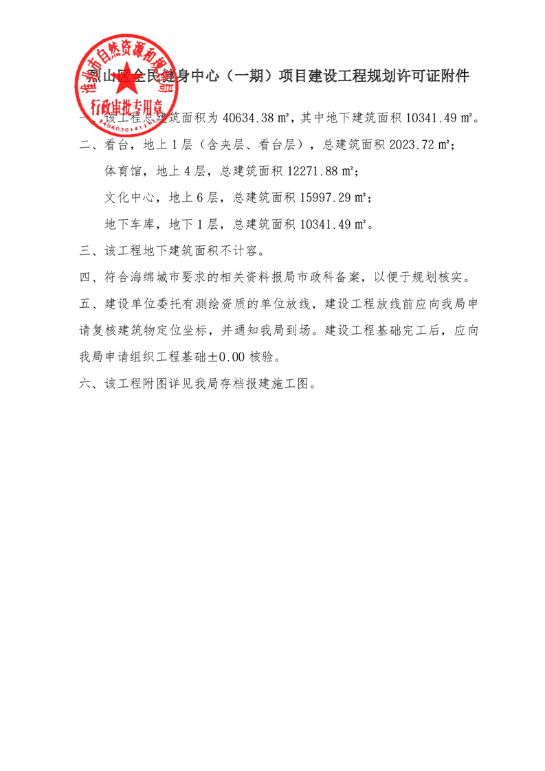 烈山区全民健身中心(一期)项目建设工程规划许可证 |
