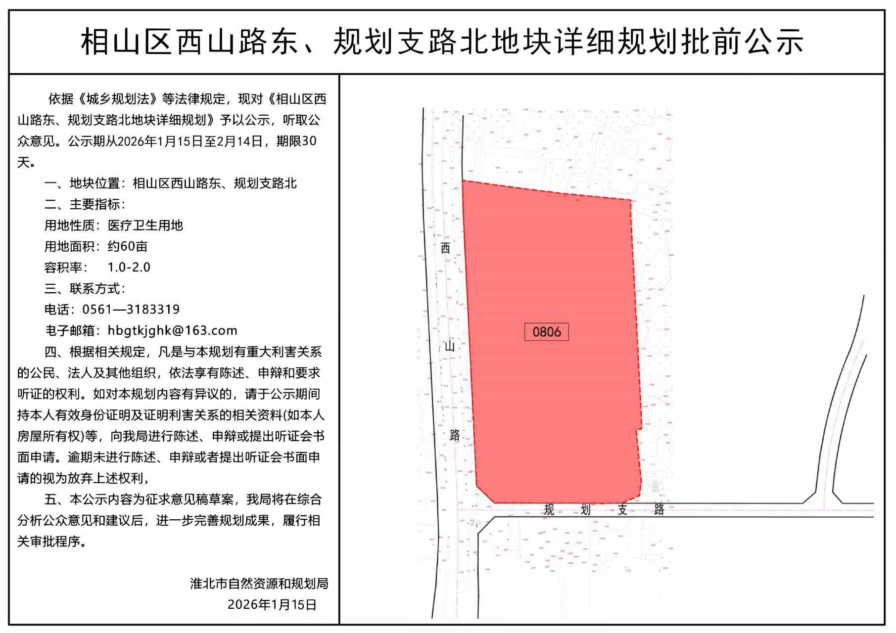 相山区西山路东、规划支路北地块详细规划批前公示 |