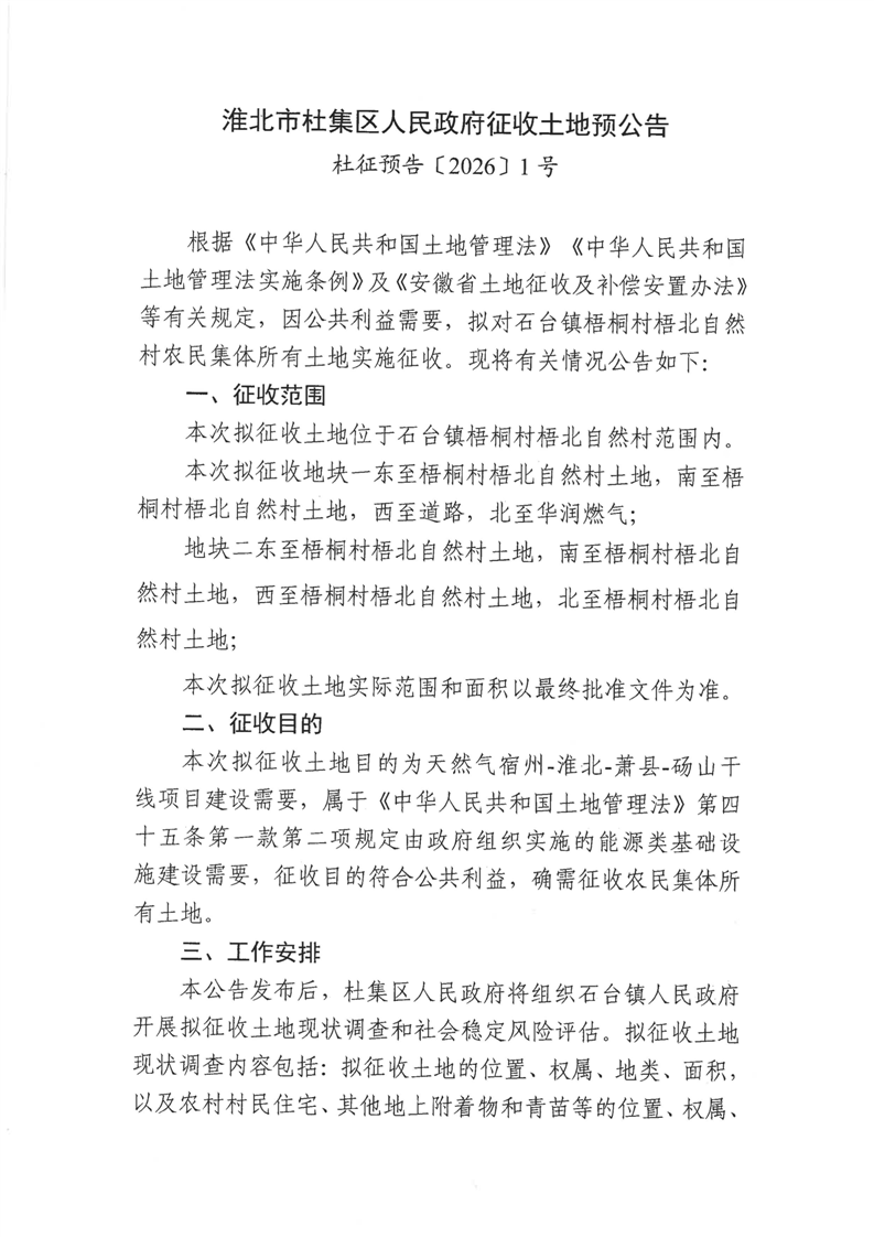 淮北市杜集区人民政府征收土地预公告(杜征预告〔2026〕1号)