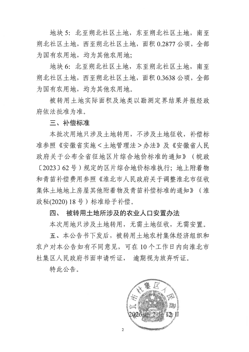淮北市杜集区人民政府转用土地公告(杜转用告知〔2026〕1号)