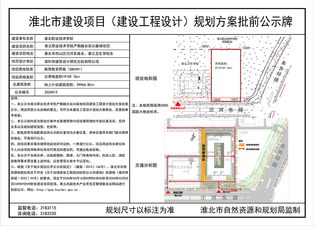 淮北职业技术学院产教融合实训基地建设项目(建设工程设计)规划方案批前公示