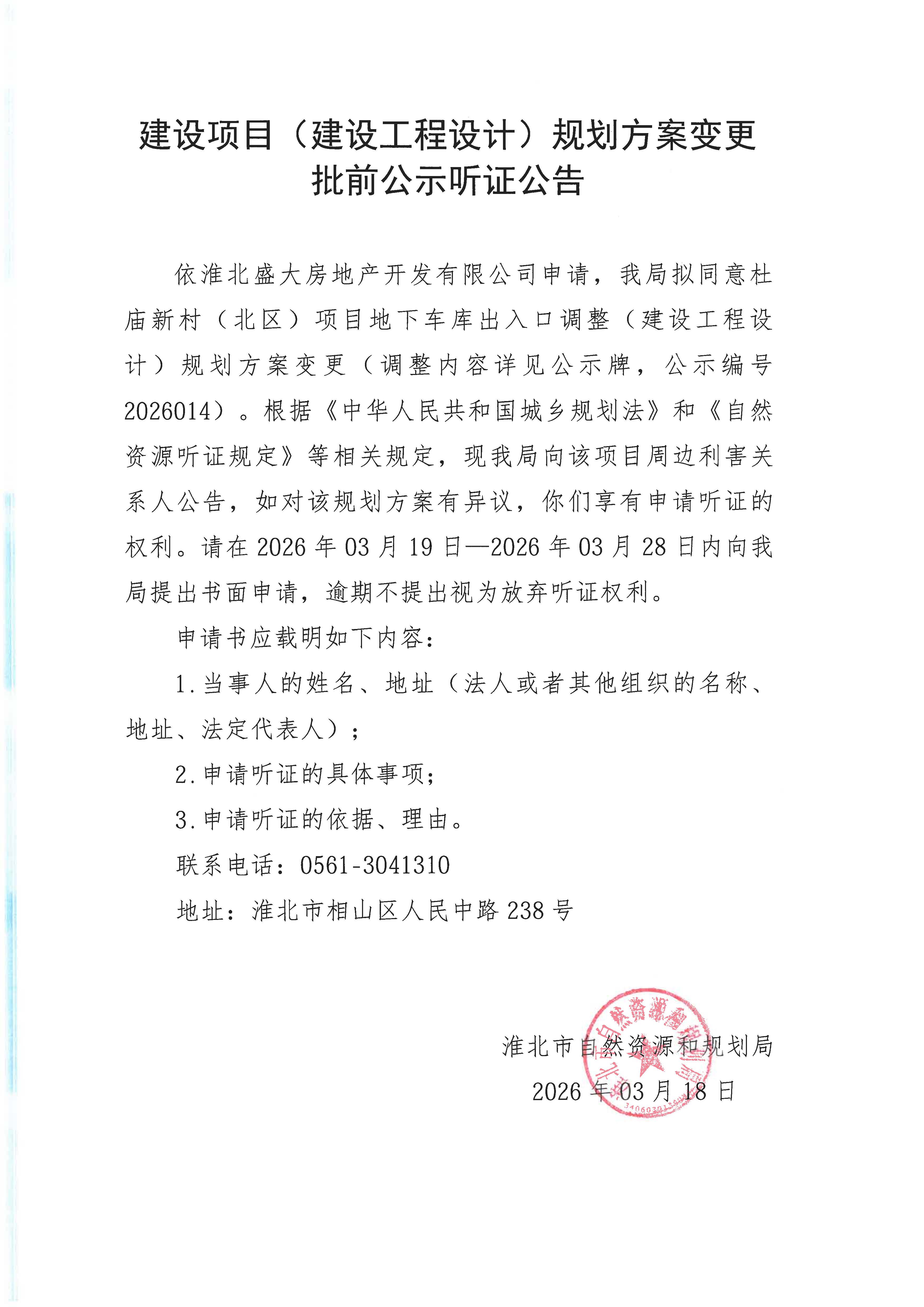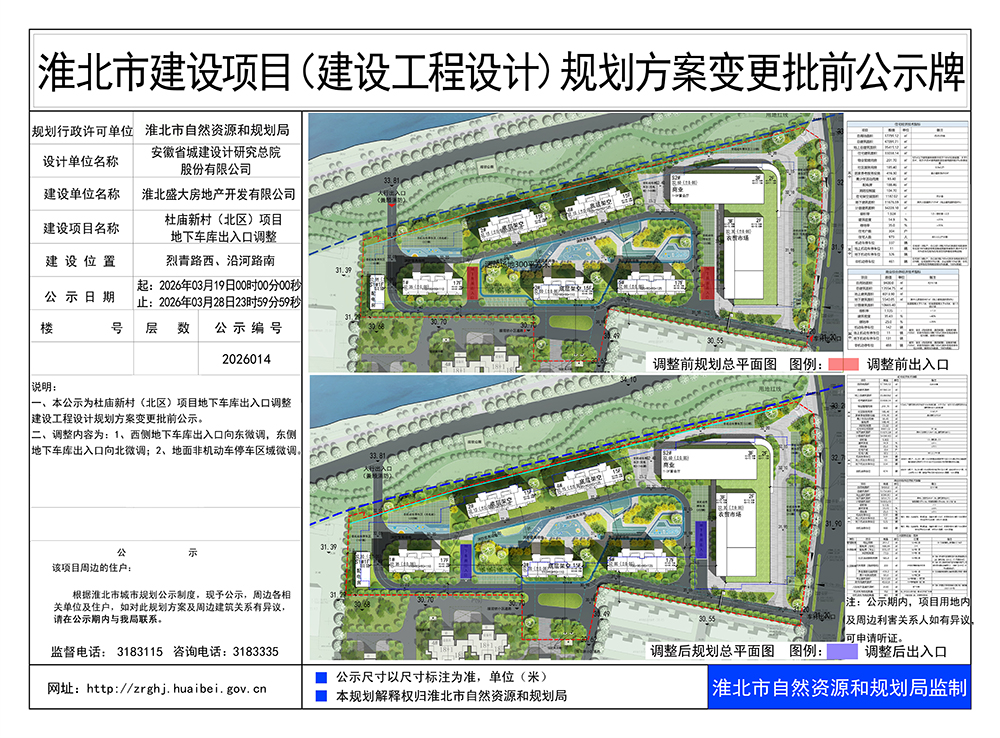 杜庙新村(北区)项目地下车库出入口调整建设项目(建设工程设计)规划方案变更批前公示