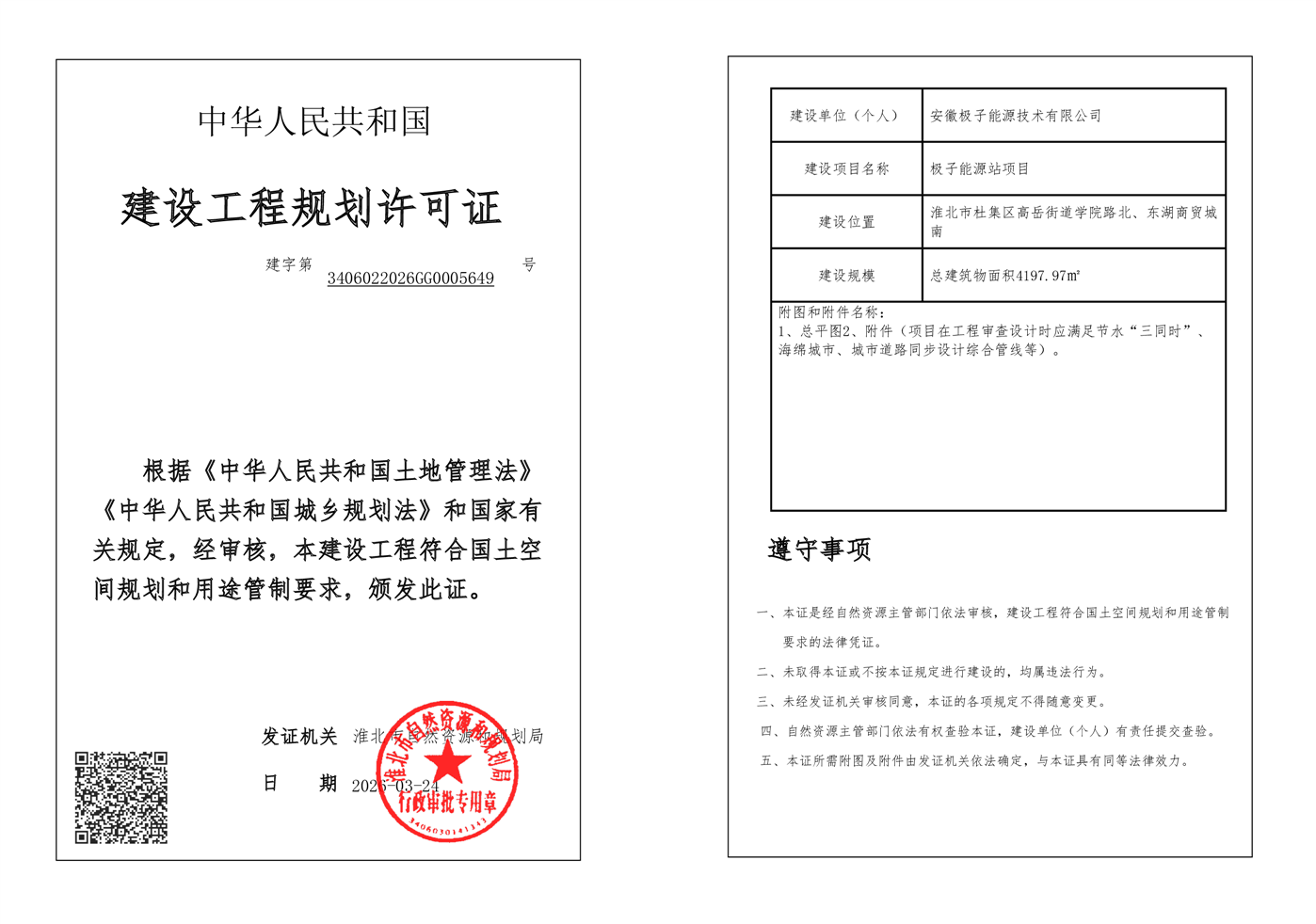 极子能源站项目建设工程规划许可证 |