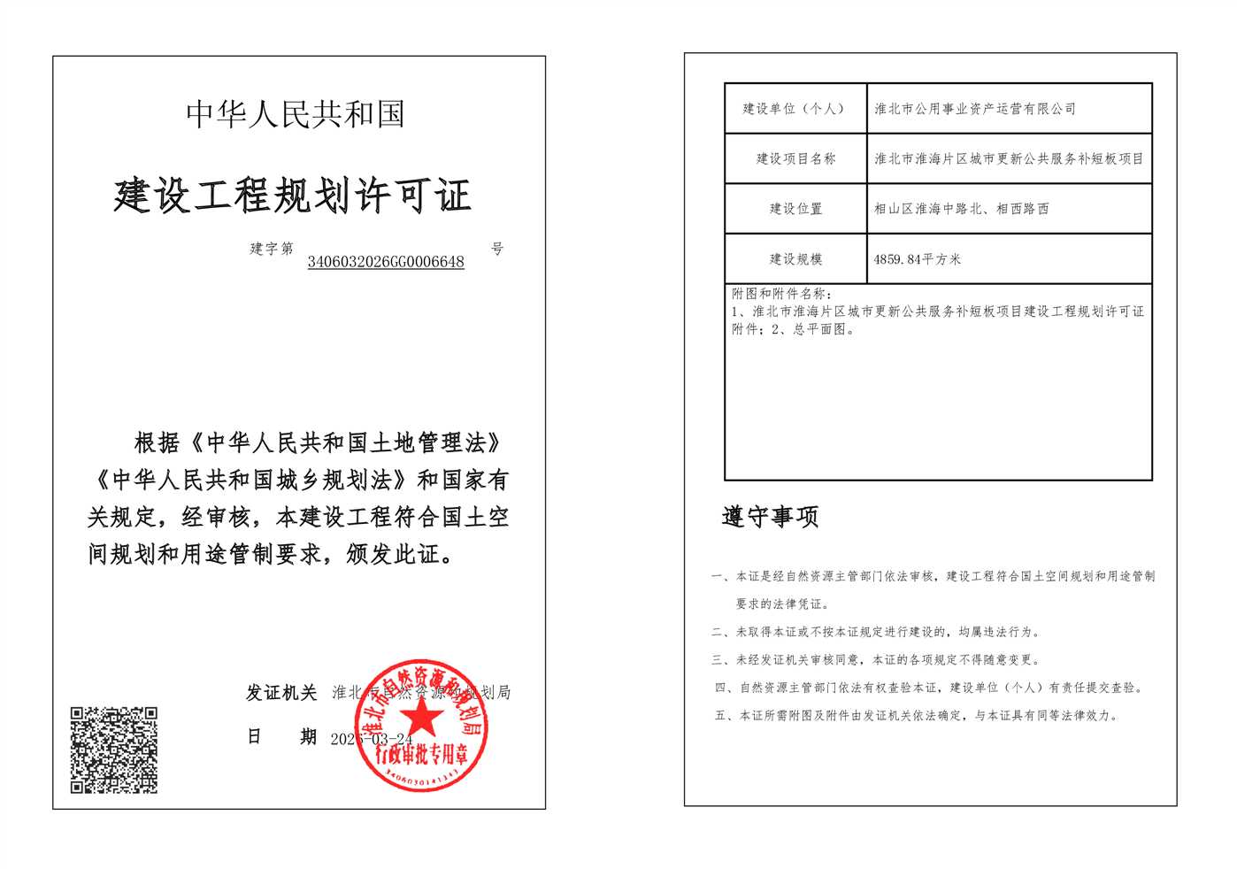 淮北市淮海片区城市更新公共服务补短板项目建设工程规划许可证