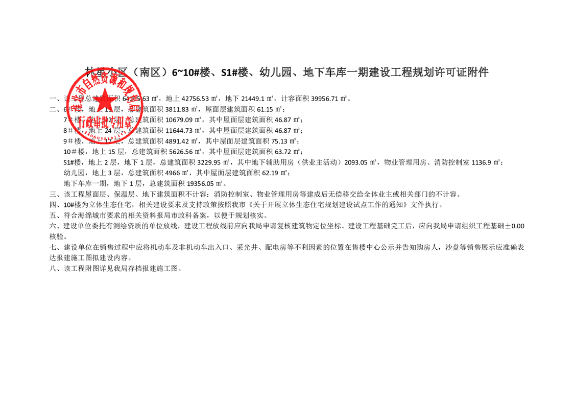 林星小区(南区)6~10#楼、S1#楼、幼儿园、地下车库一期建设工程规划许可证